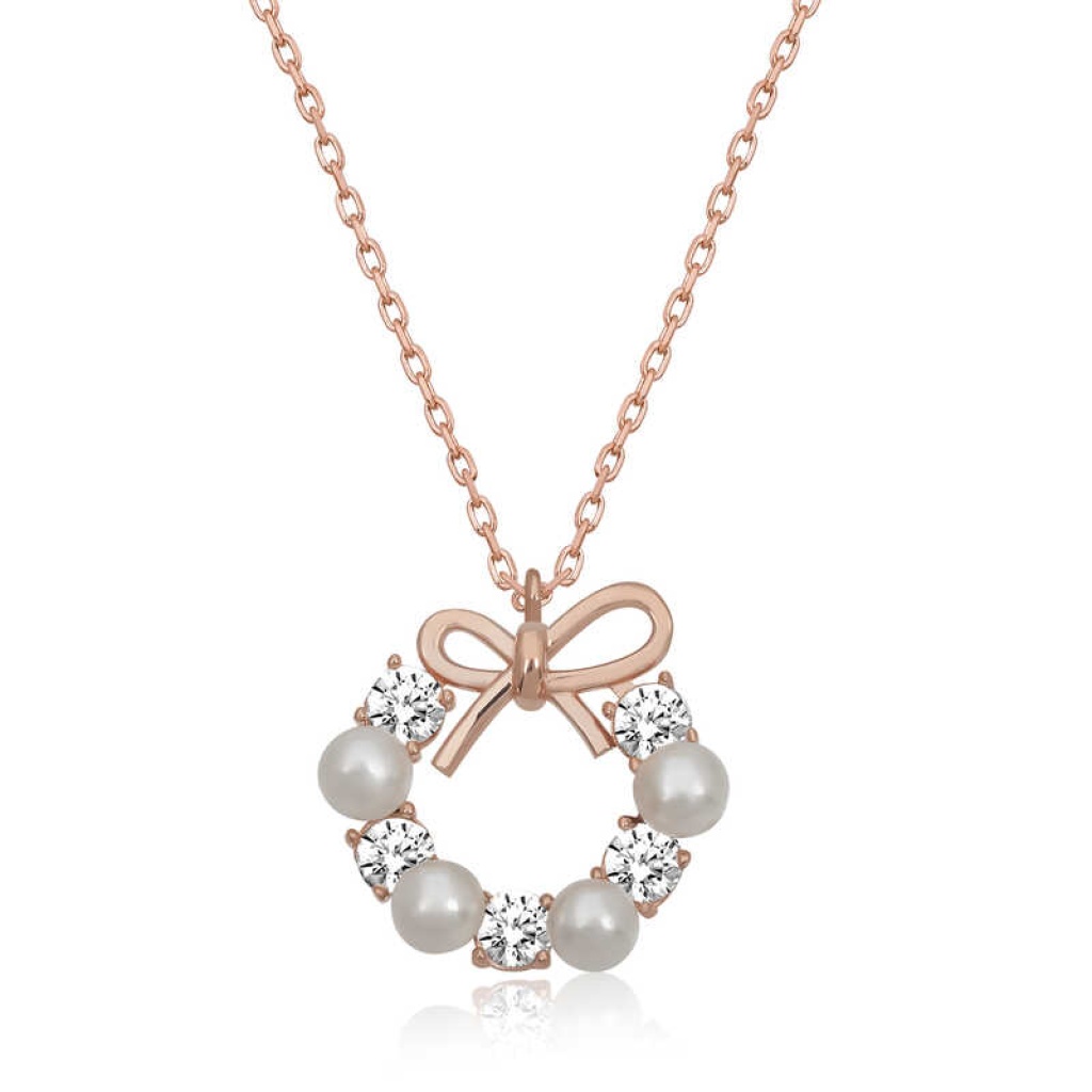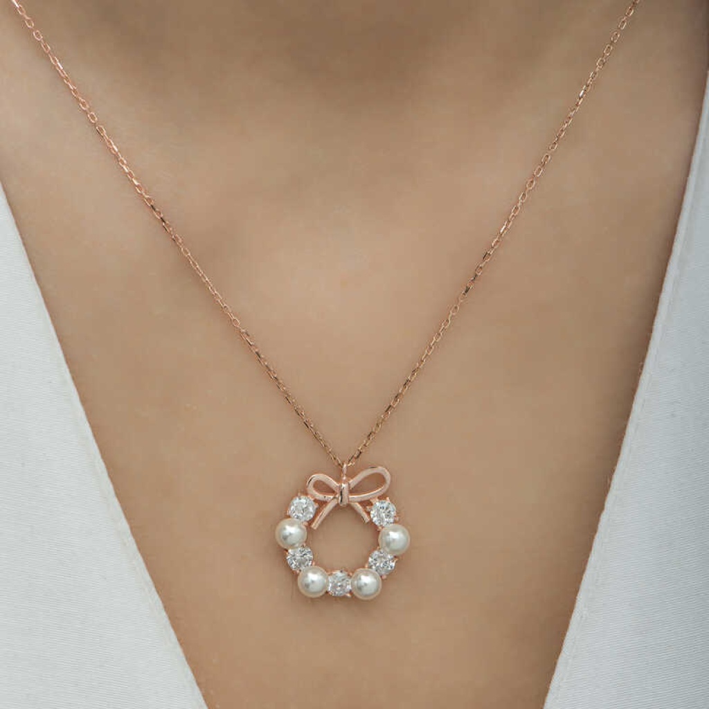 Gümüş Rose İnci Kurdele Kadın Kolye