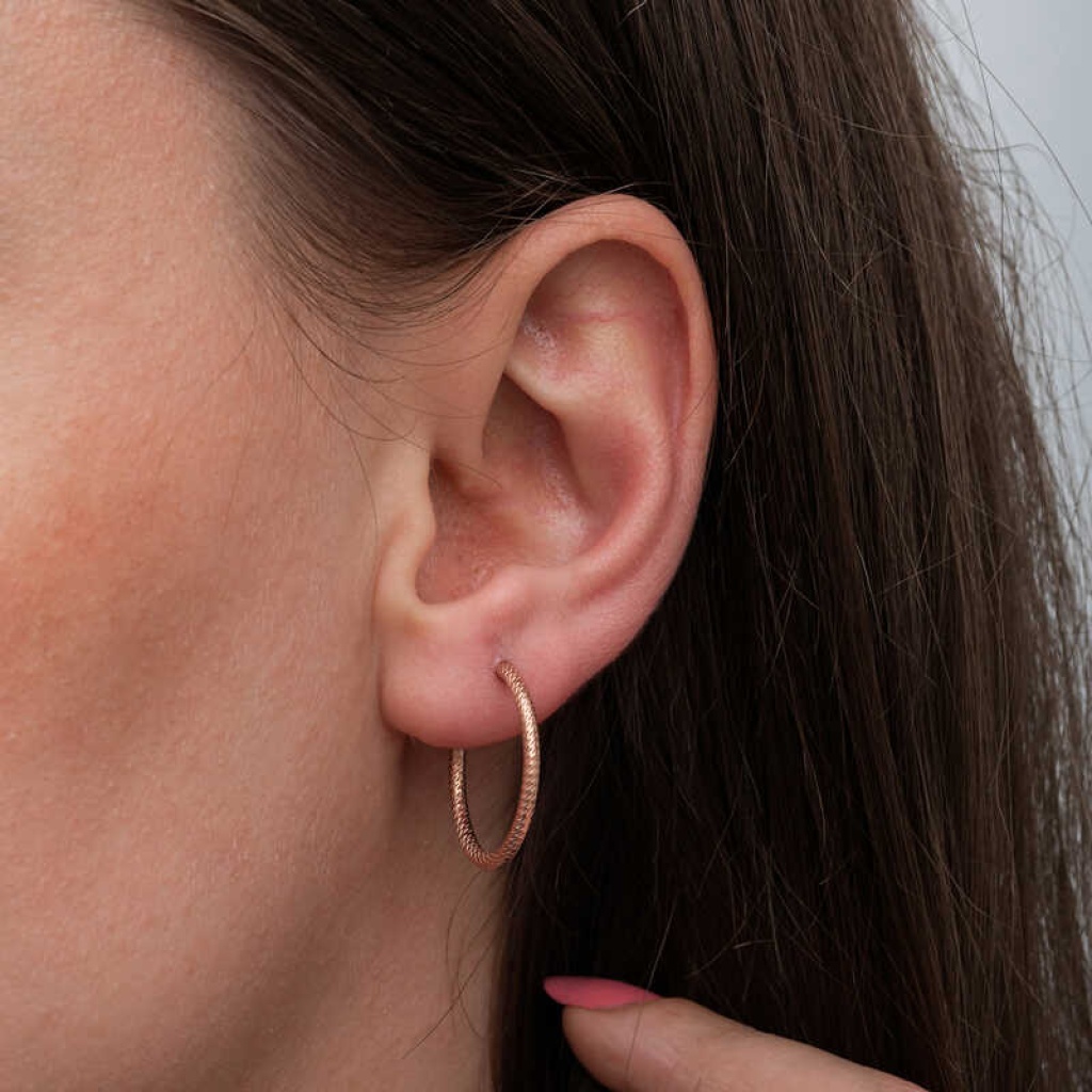 Gümüş Rose Kalemli Halka Kadın Küpe