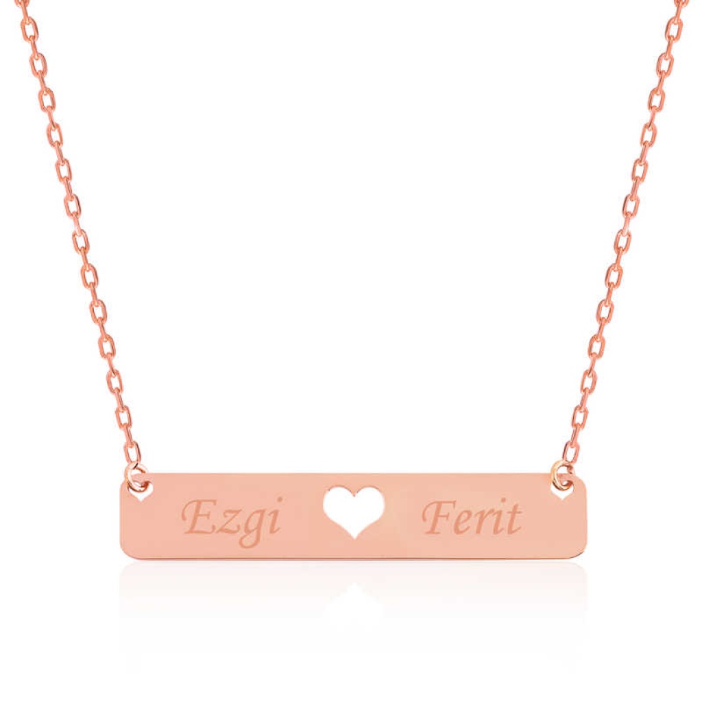Gümüş Rose Kişiye Özel İsimli Çubuk Kalp Kolye