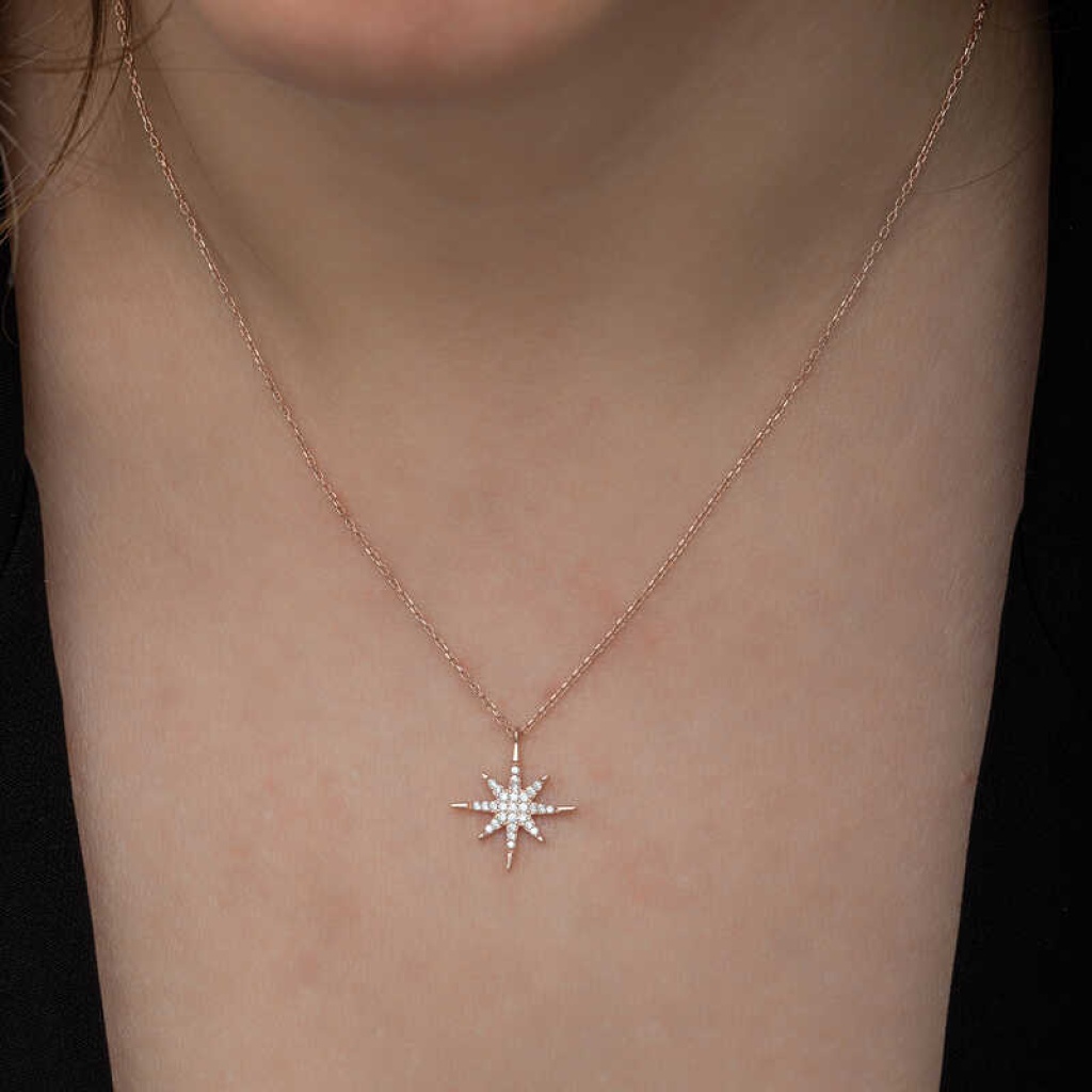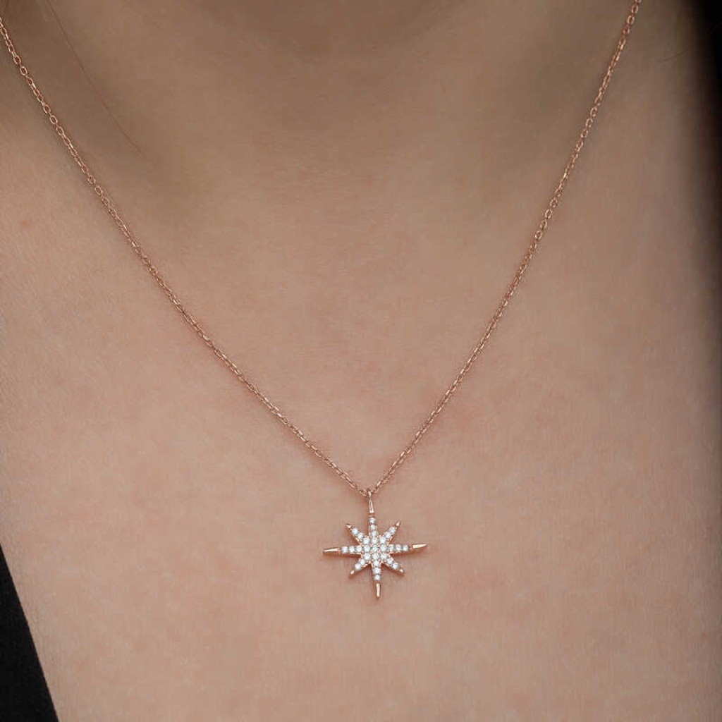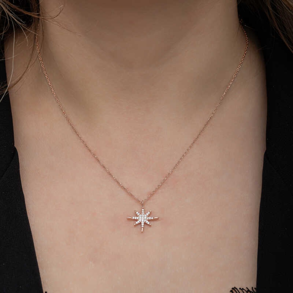 Gümüş Rose Kutup Yıldızı Kadın Kolye
