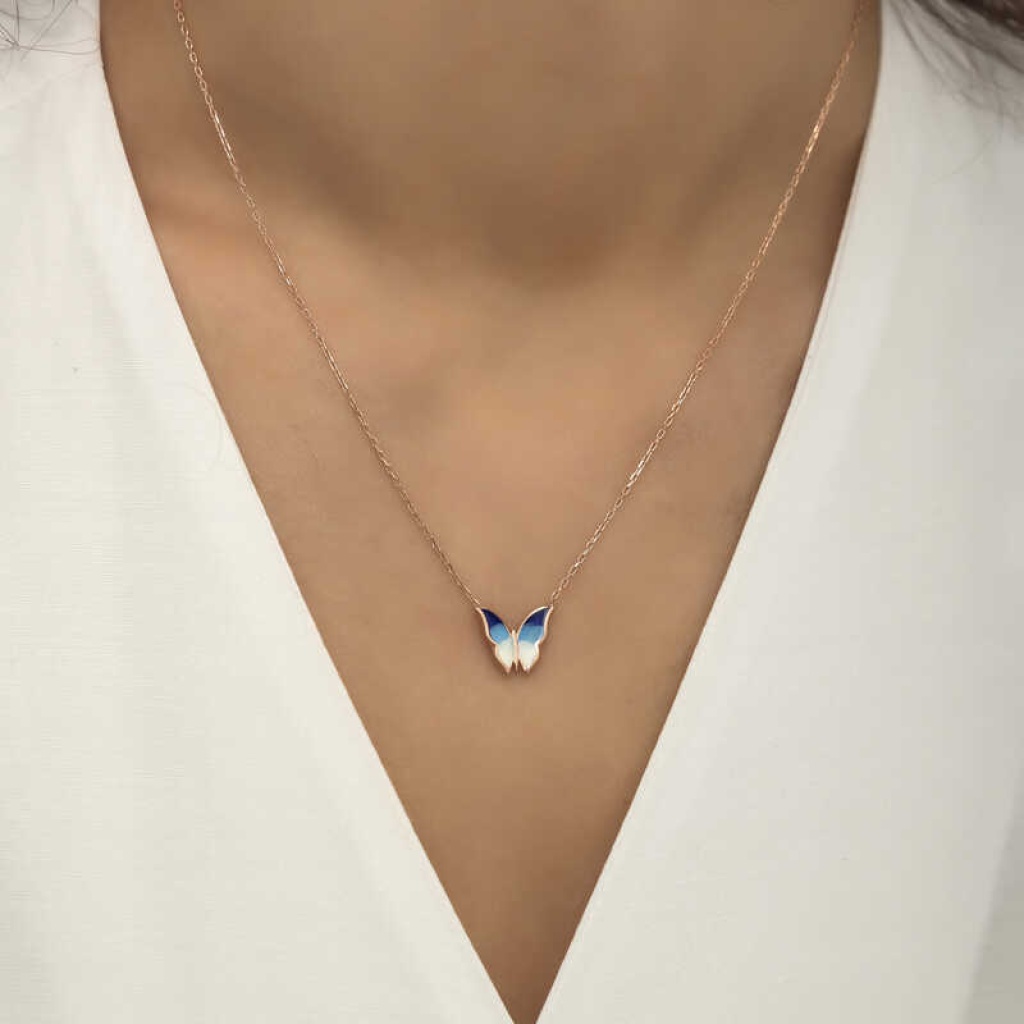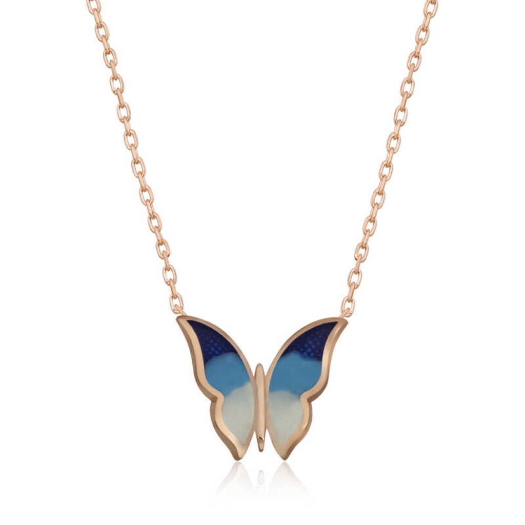 Gümüş Rose Minimal Kelebek Bayan Kolye