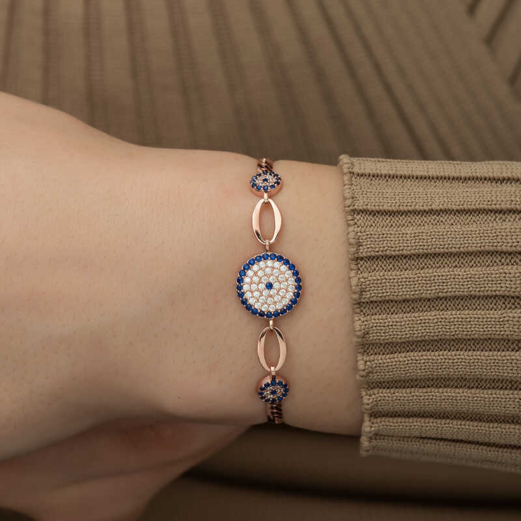 Gümüş Rose Nazar Boncuklu Bileklik
