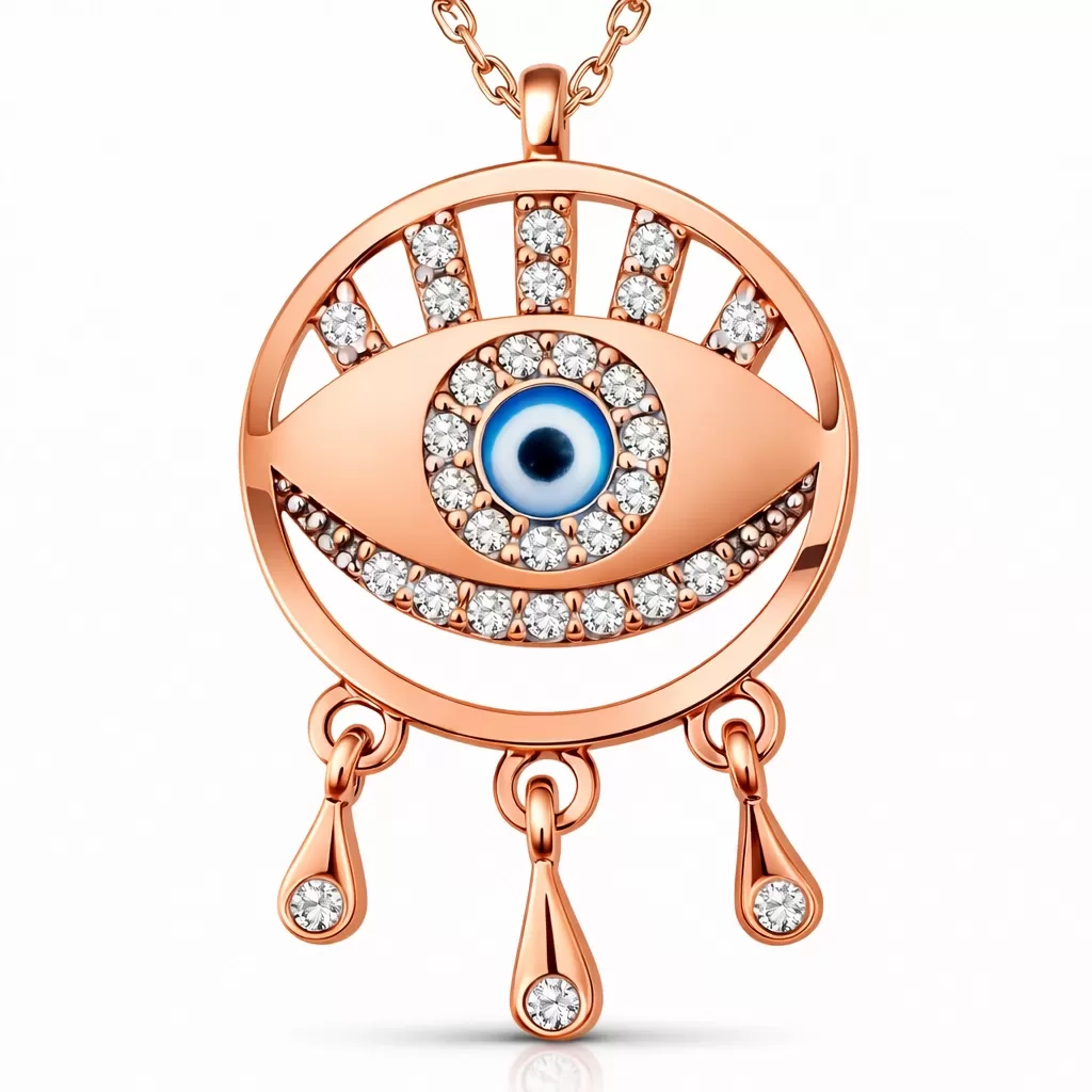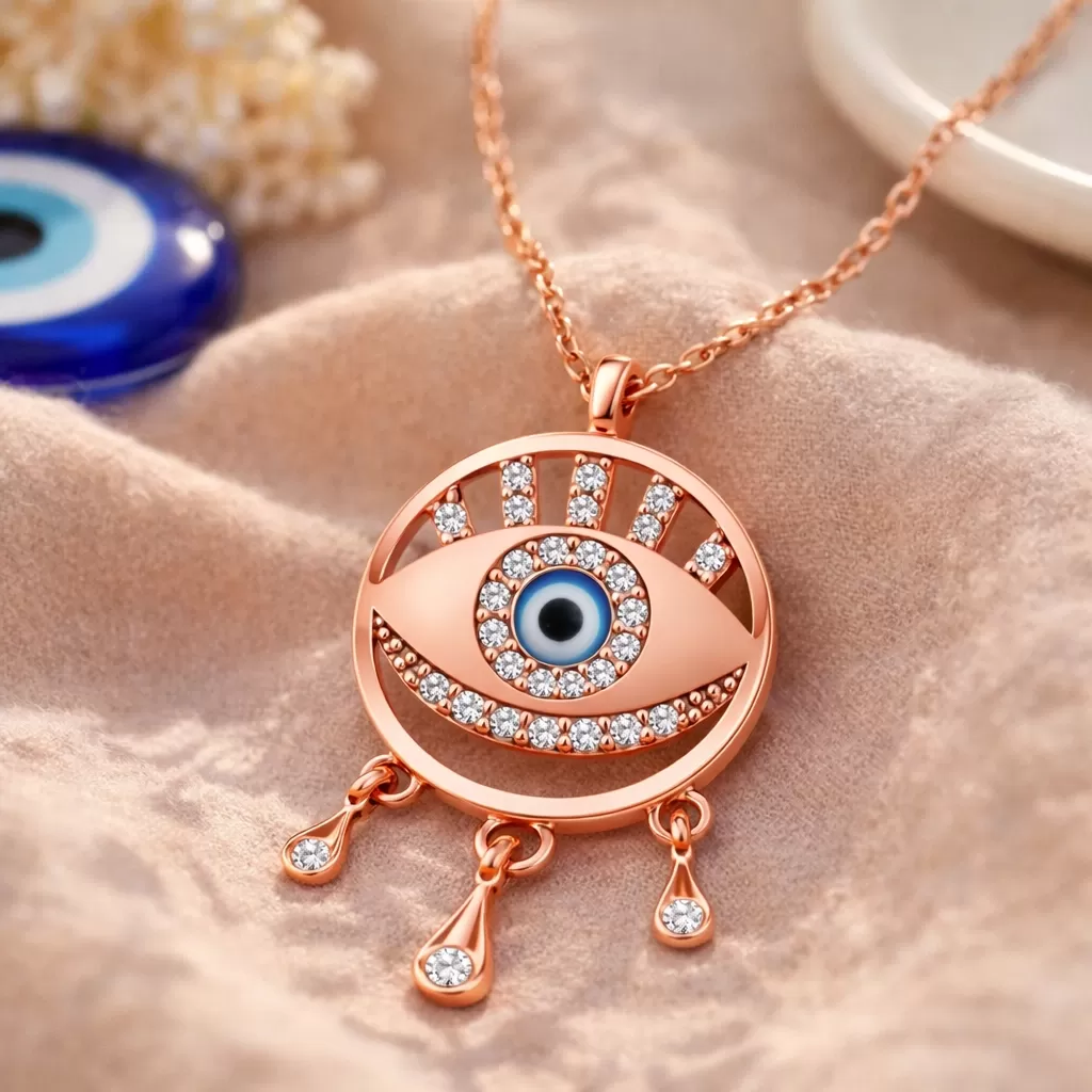 Gümüş Rose Nazarlı Göz Kadın Kolye