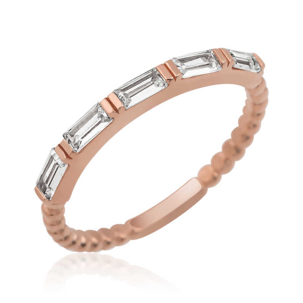 Gümüş Rose Sıralı Baget Taşlı Kadın Yüzük