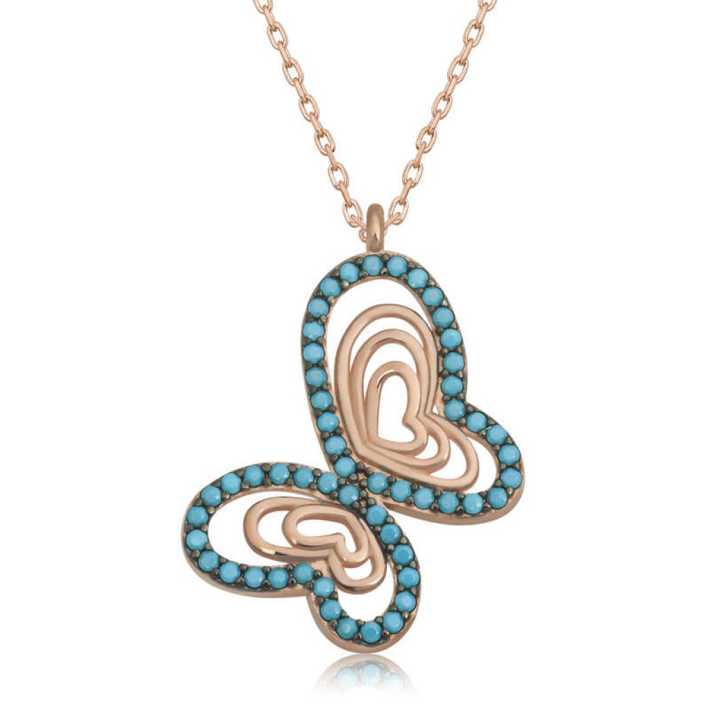 Gümüş Rose Turkuaz Taşlı Kelebek Kadın Kolye