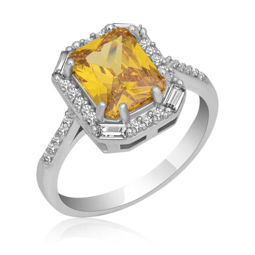 Gümüş Sarı Taşlı Baget Kare Kadın Yüzük