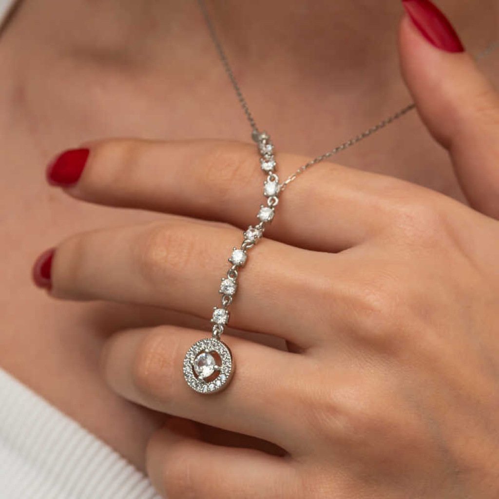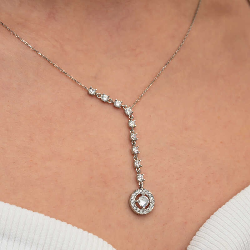 Gümüş Sıralı Zirkon Taşlı Çember Kadın Kolye