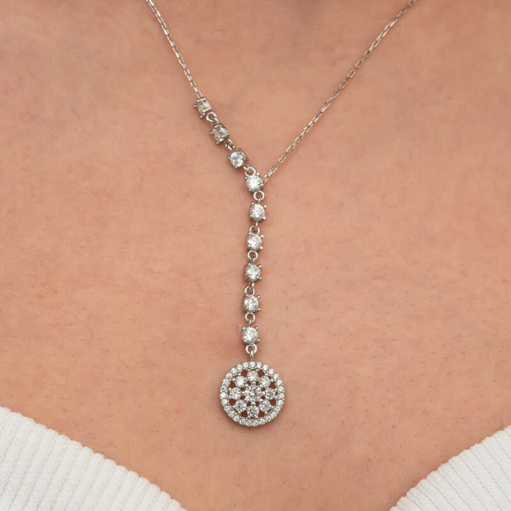 Gümüş Sıralı Zirkon Taşlı Çiçek Kadın Kolye