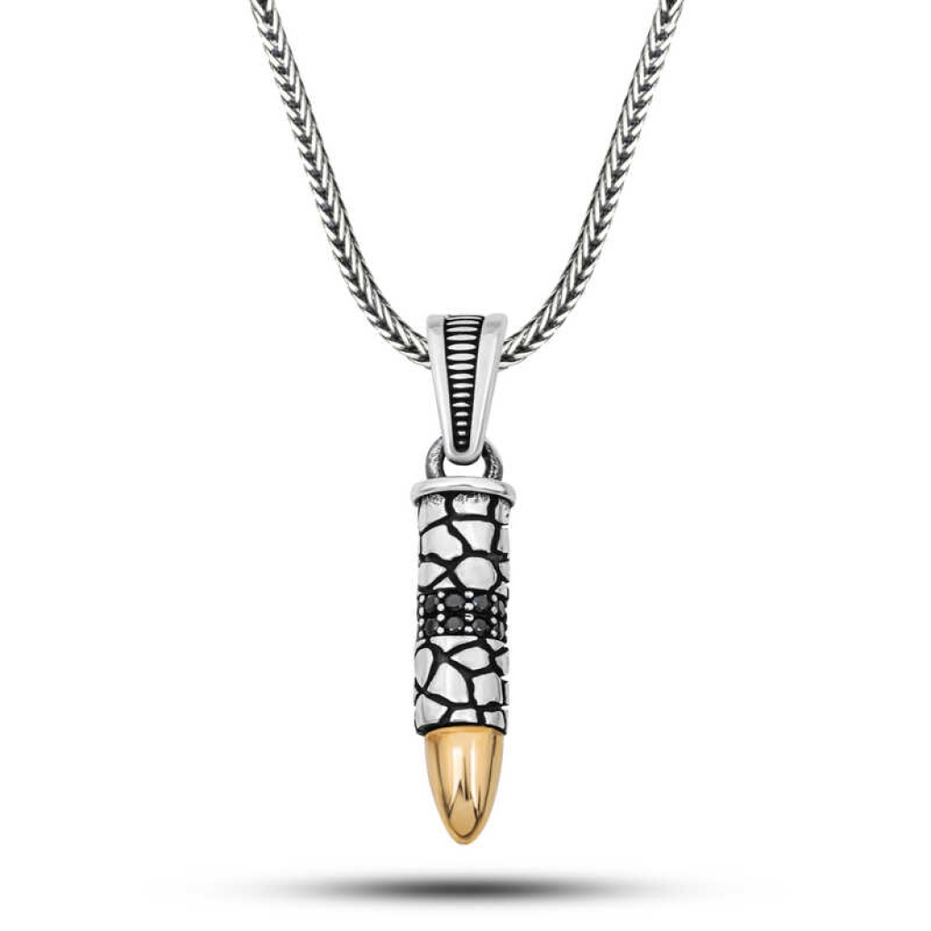 Gümüş Siyah Zirkon Taşlı Mermi Erkek Kolye