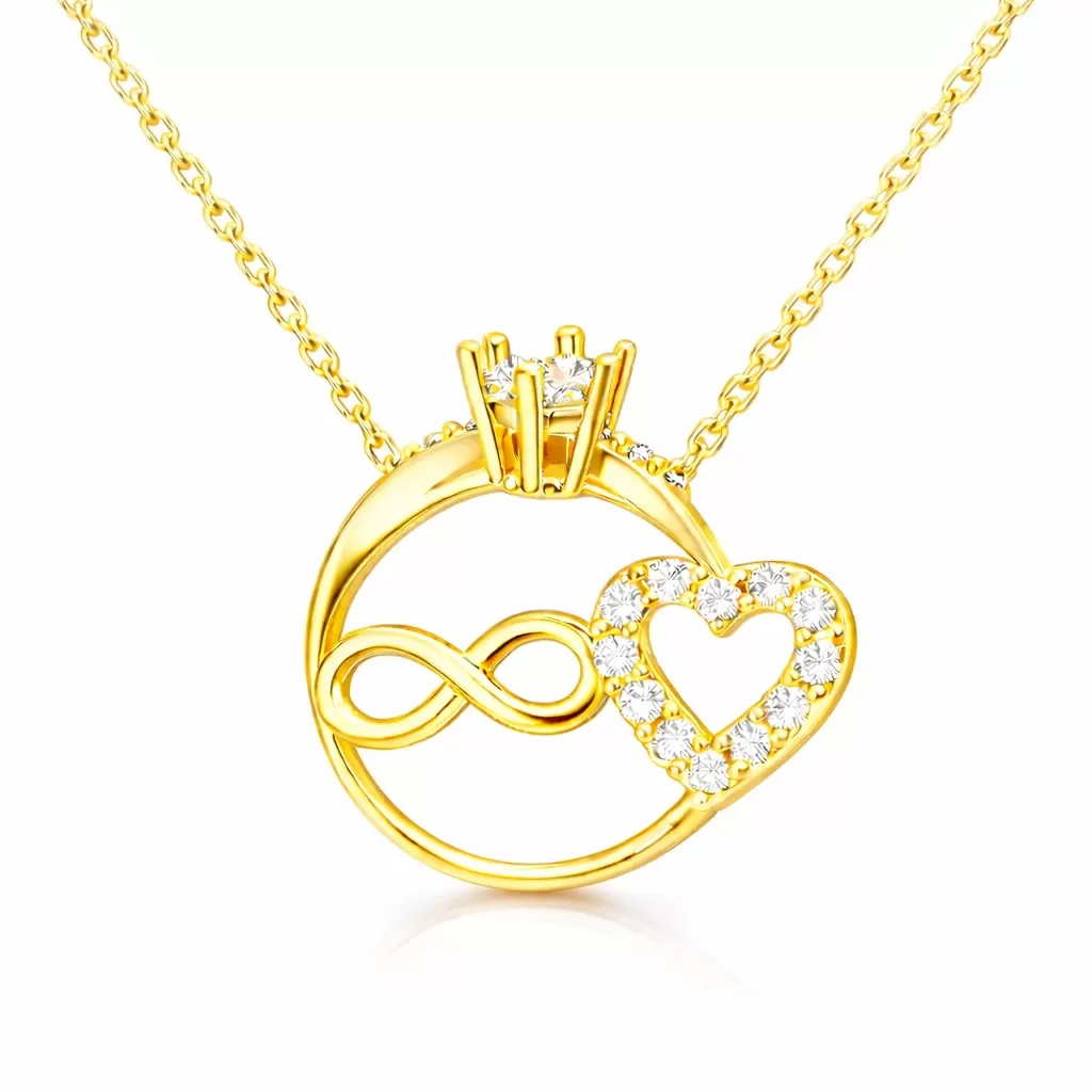 Gümüş Sonsuzluk ve Kalp Taşlı Bayan Kolye