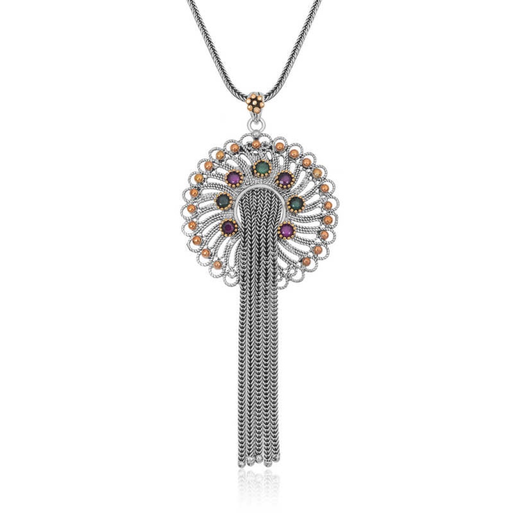 Gümüş Telkari Yakut Zümrüt Renkli Taşlı Kadın Kolye
