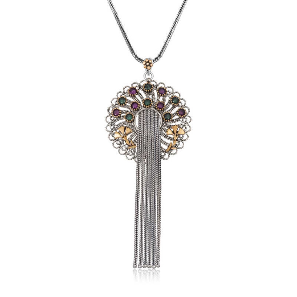 Gümüş Telkari Yakut Zümrüt Renkli Taşlı Kadın Kolye