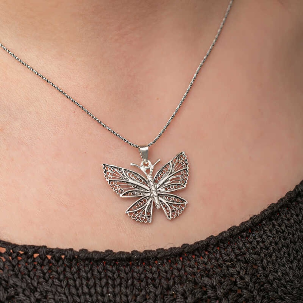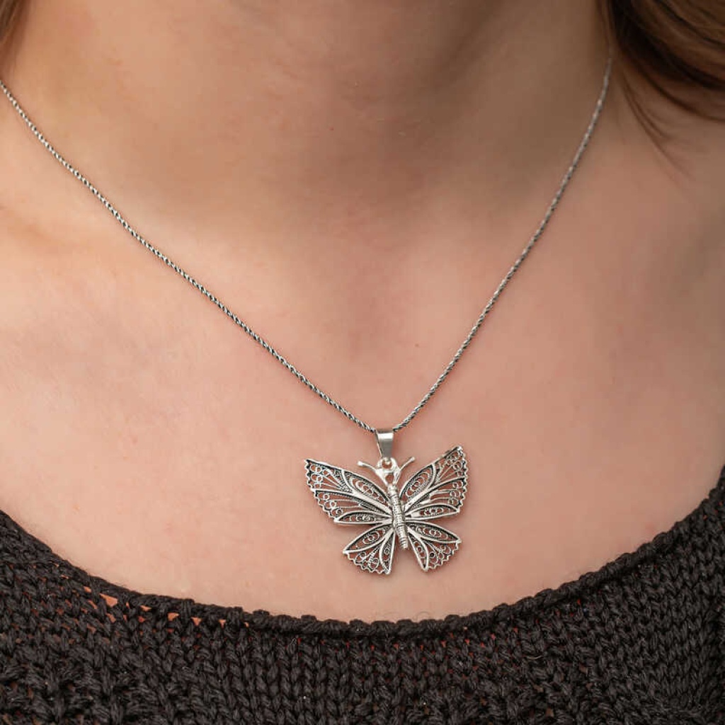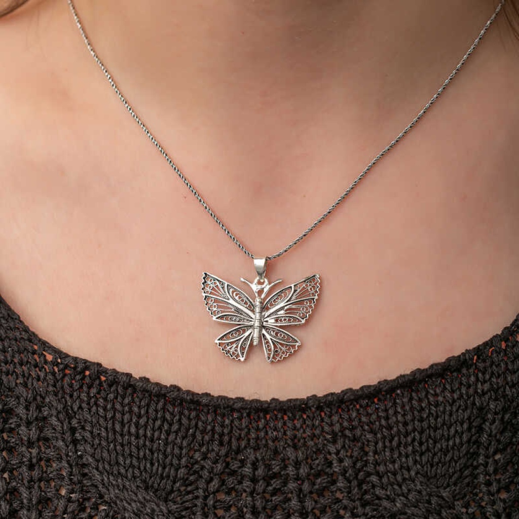 Gümüş Telkari Kelebek Kadın Kolye