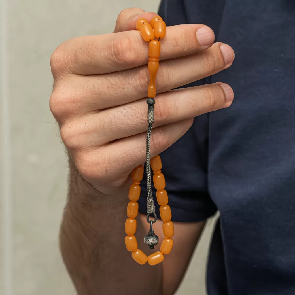Gümüş Top Kazaz Püsküllü Kapsül Kesim Sıkma Kehribar Tesbih