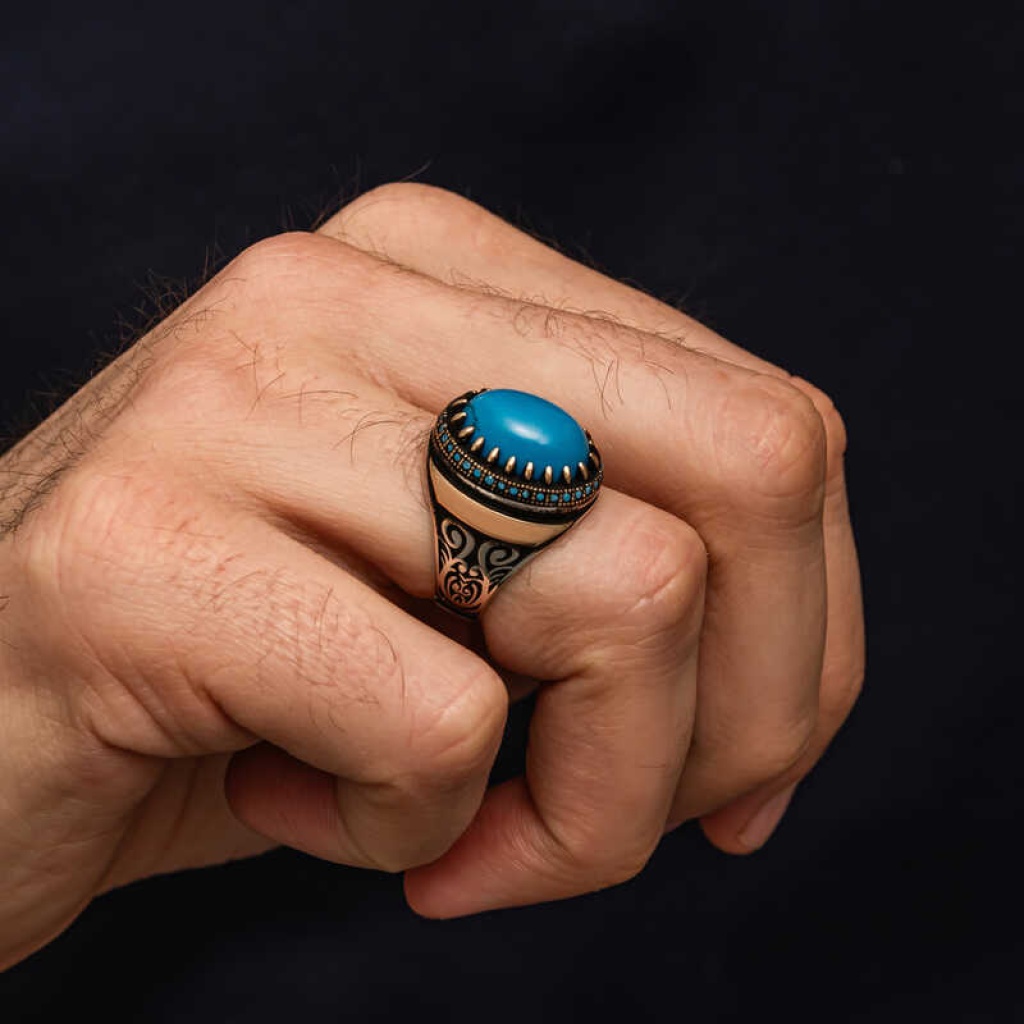 Gümüş Turkuaz Taşlı Erkek Yüzük