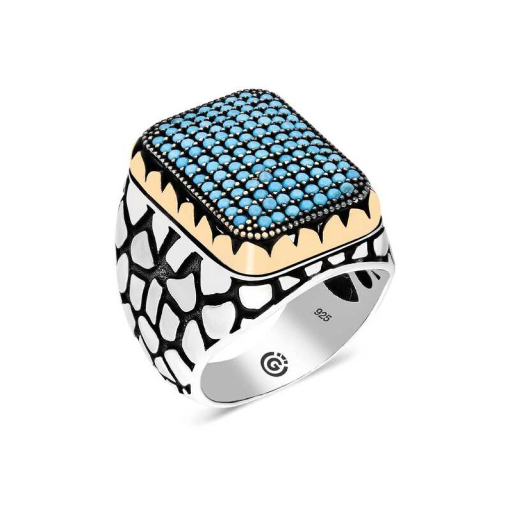 Gümüş Turkuaz Zirkon Taşlı Kare Erkek Yüzük