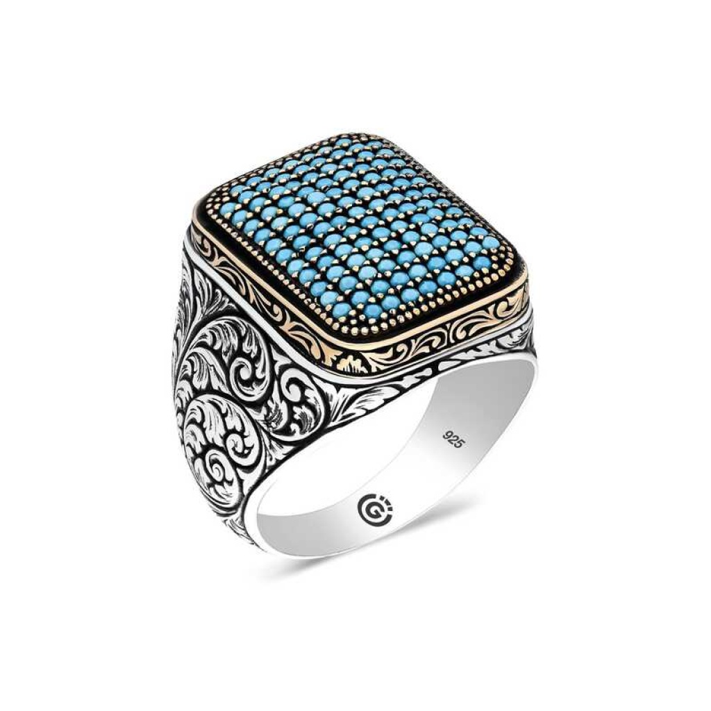 Gümüş Turkuaz Zirkon Taşlı Kare Erkek Yüzük