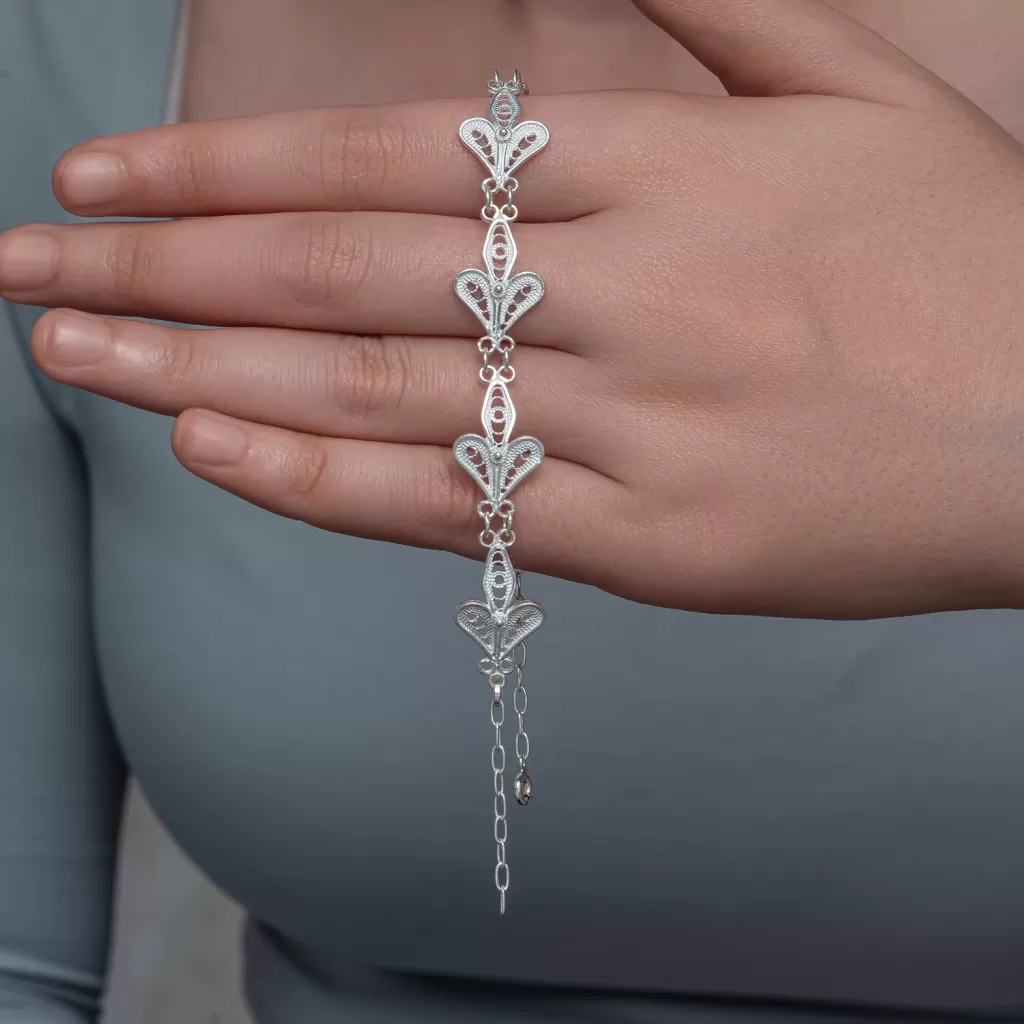 Gümüş Üç Yaprak Telkari Kadın Bileklik