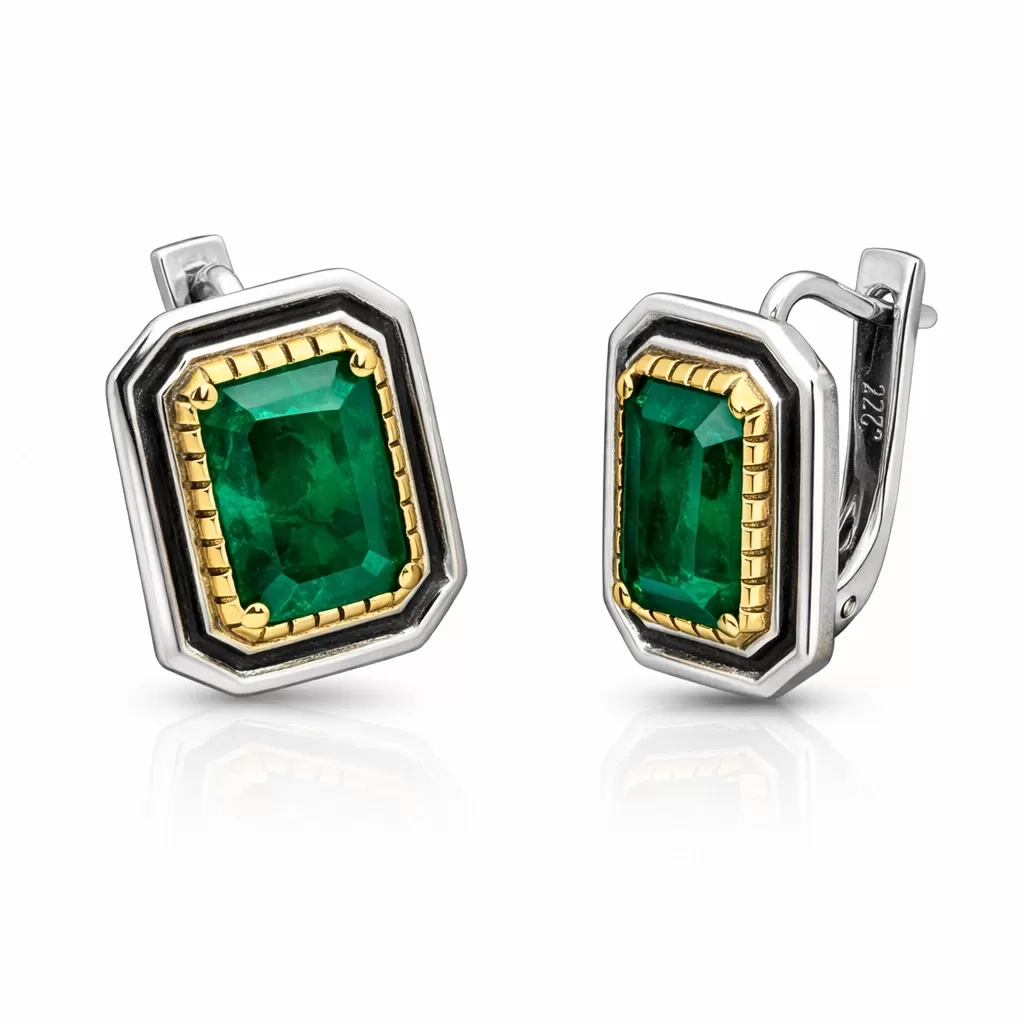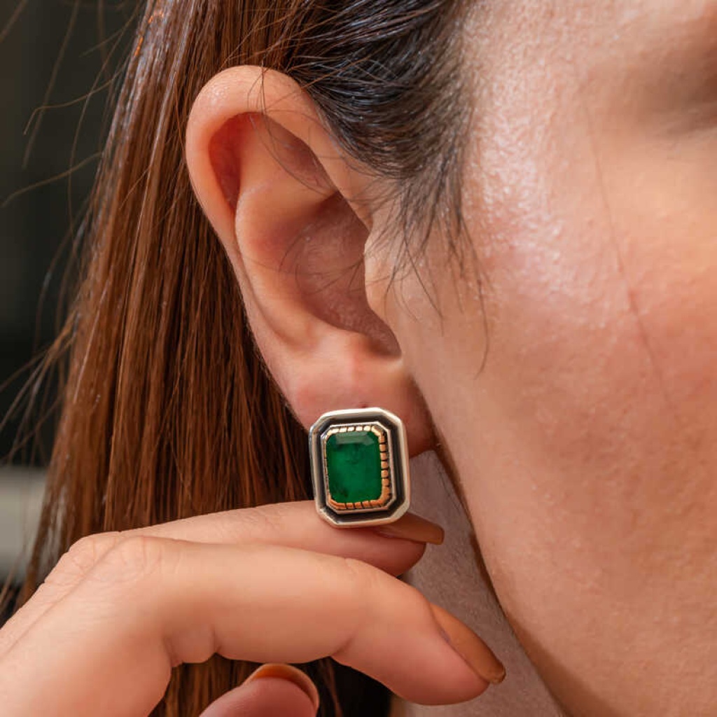 Gümüş Yeşil Taşlı Otantik Kadın Küpe