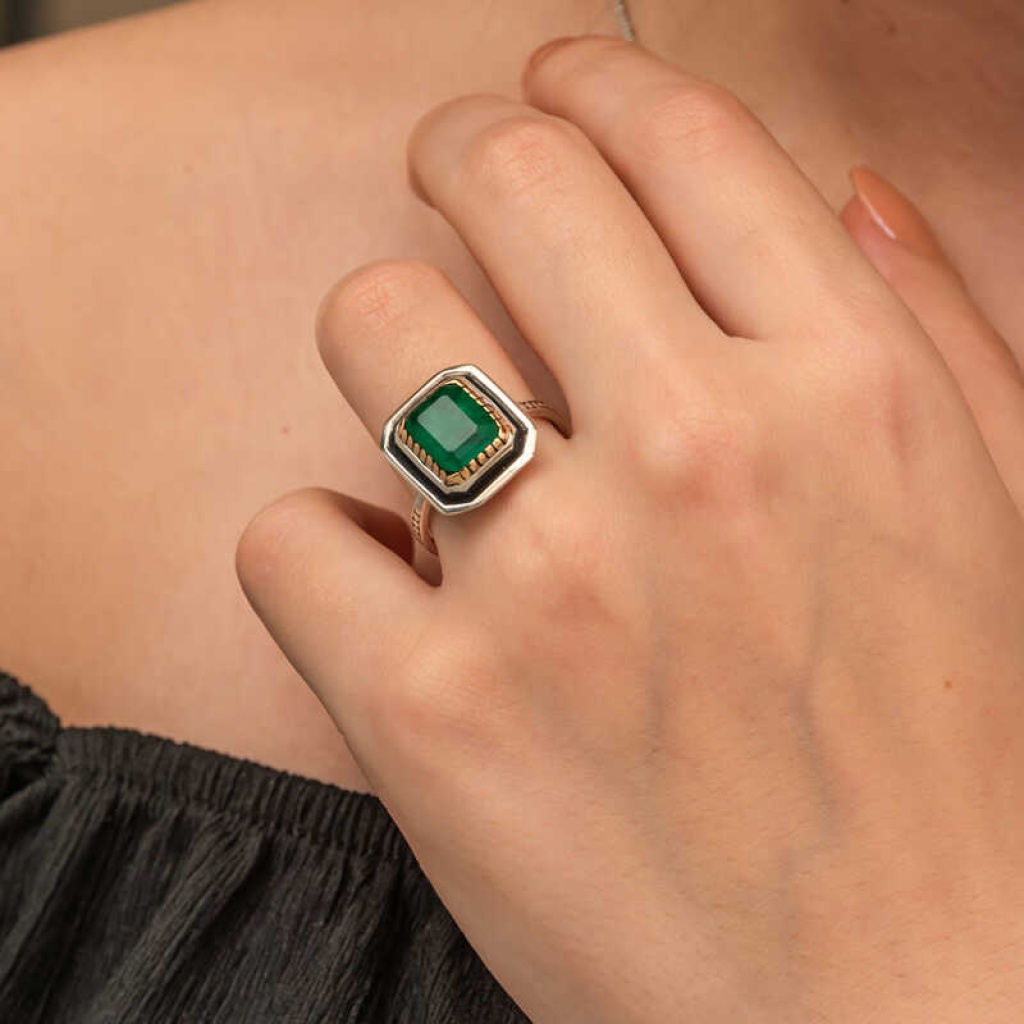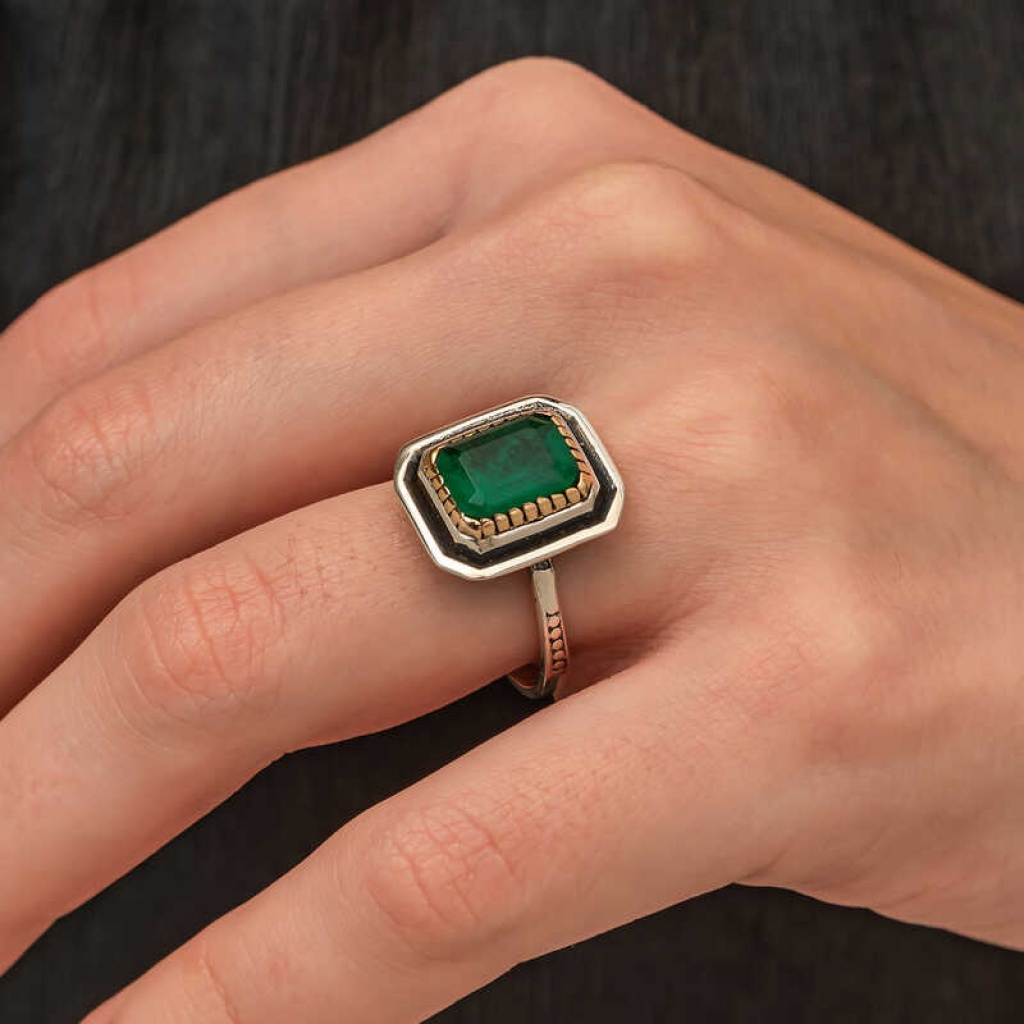 Gümüş Yeşil Taşlı Otantik Kadın Yüzük