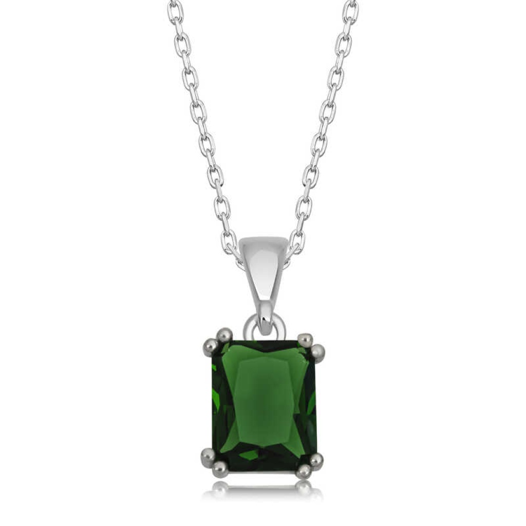 Gümüş Yeşil Zirkon Baget Taşlı Kadın Kolye