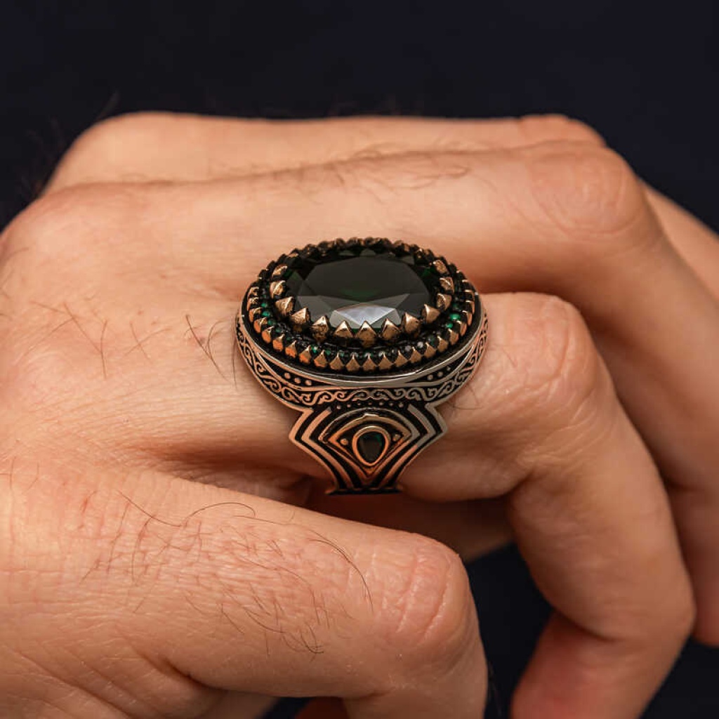 Gümüş Yeşil Zirkon Taşlı Erkek Yüzük