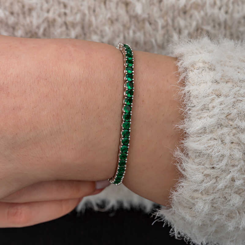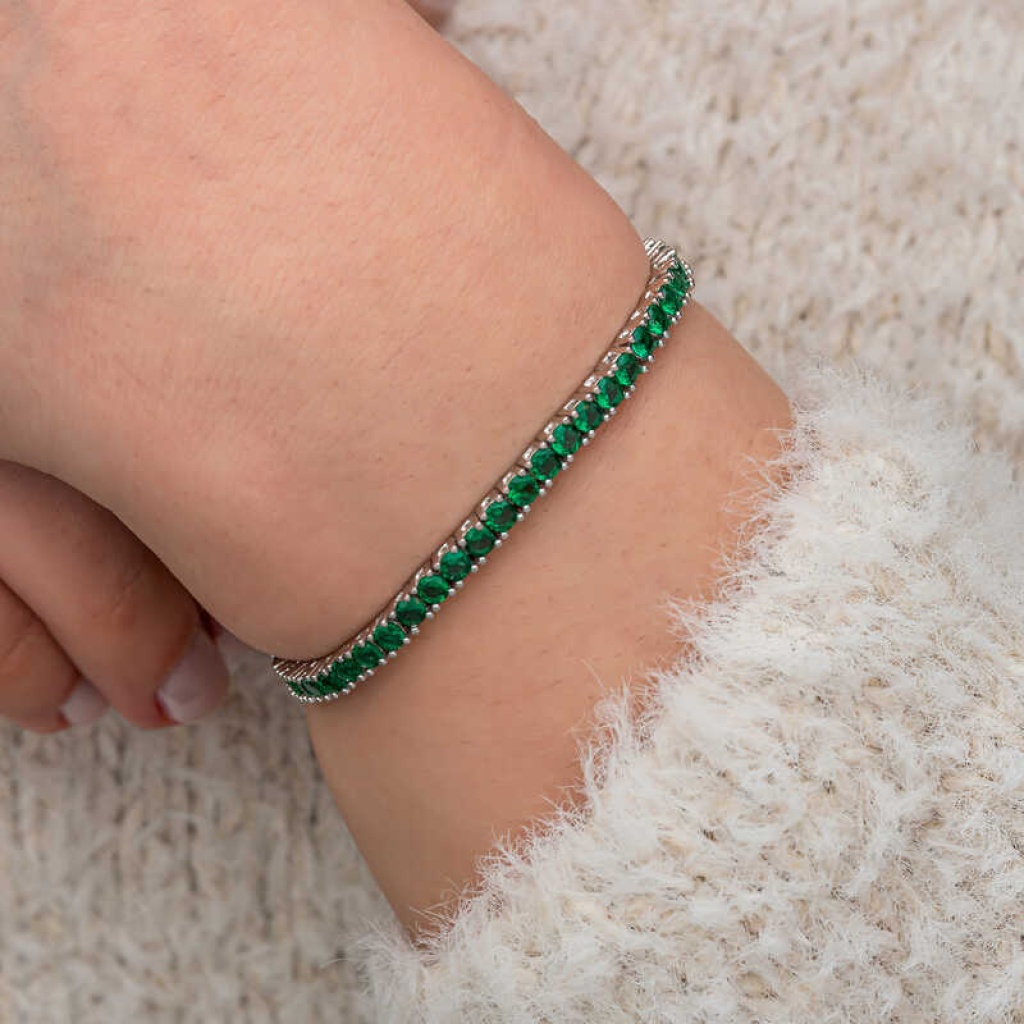 Gümüş Yeşil Zirkon Taşlı Su Yolu Kadın Bileklik