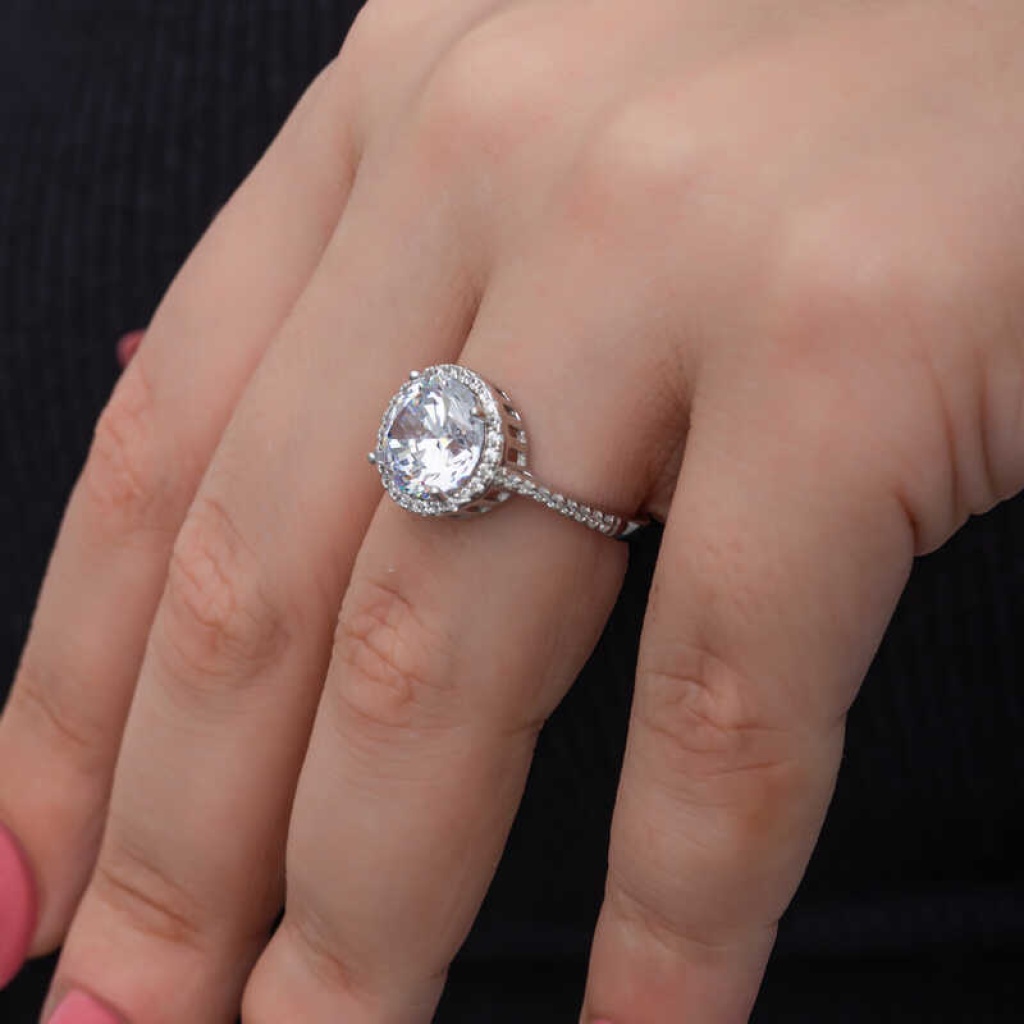 Gümüş Yuvarlak Montür Tek Taş Kadın Yüzük