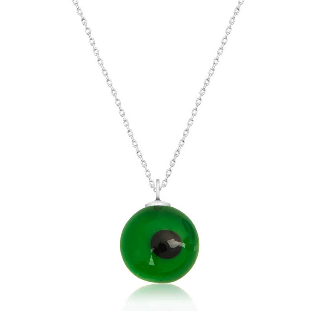 Gümüş Yuvarlak Yeşil Camgöz Nazar Bayan Kolye