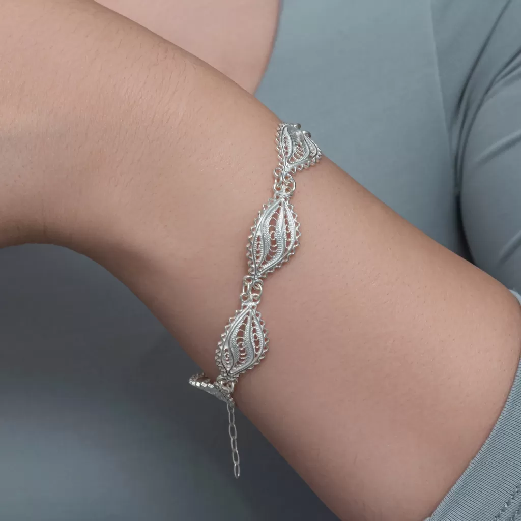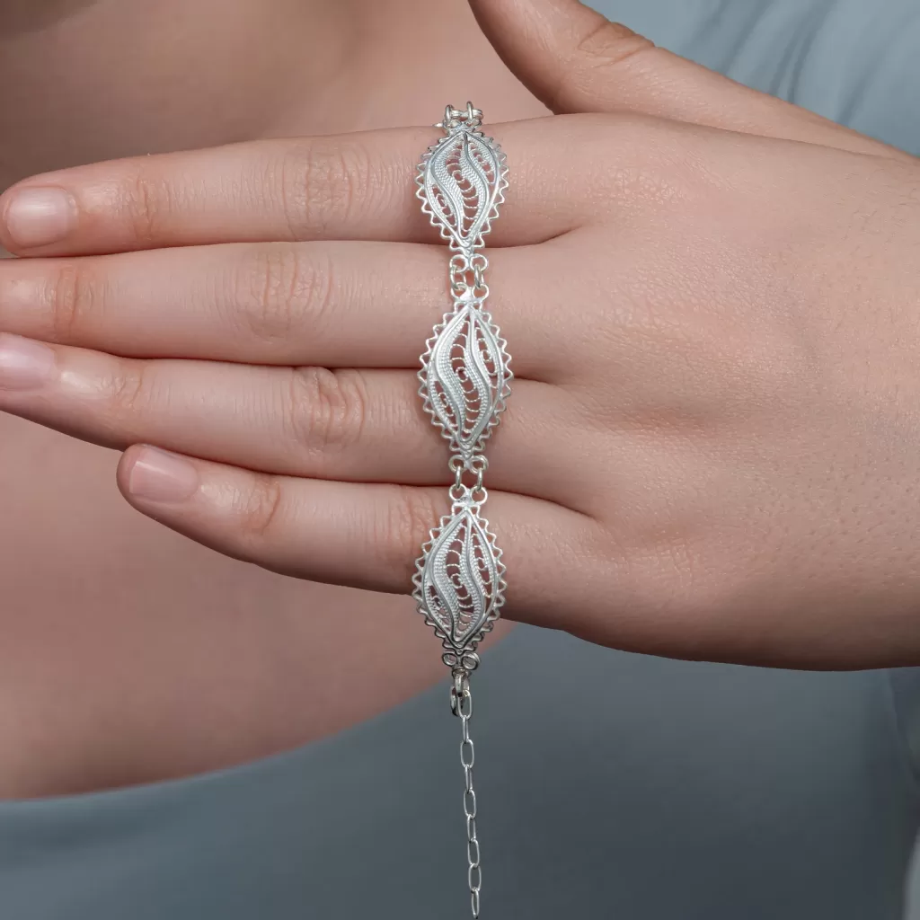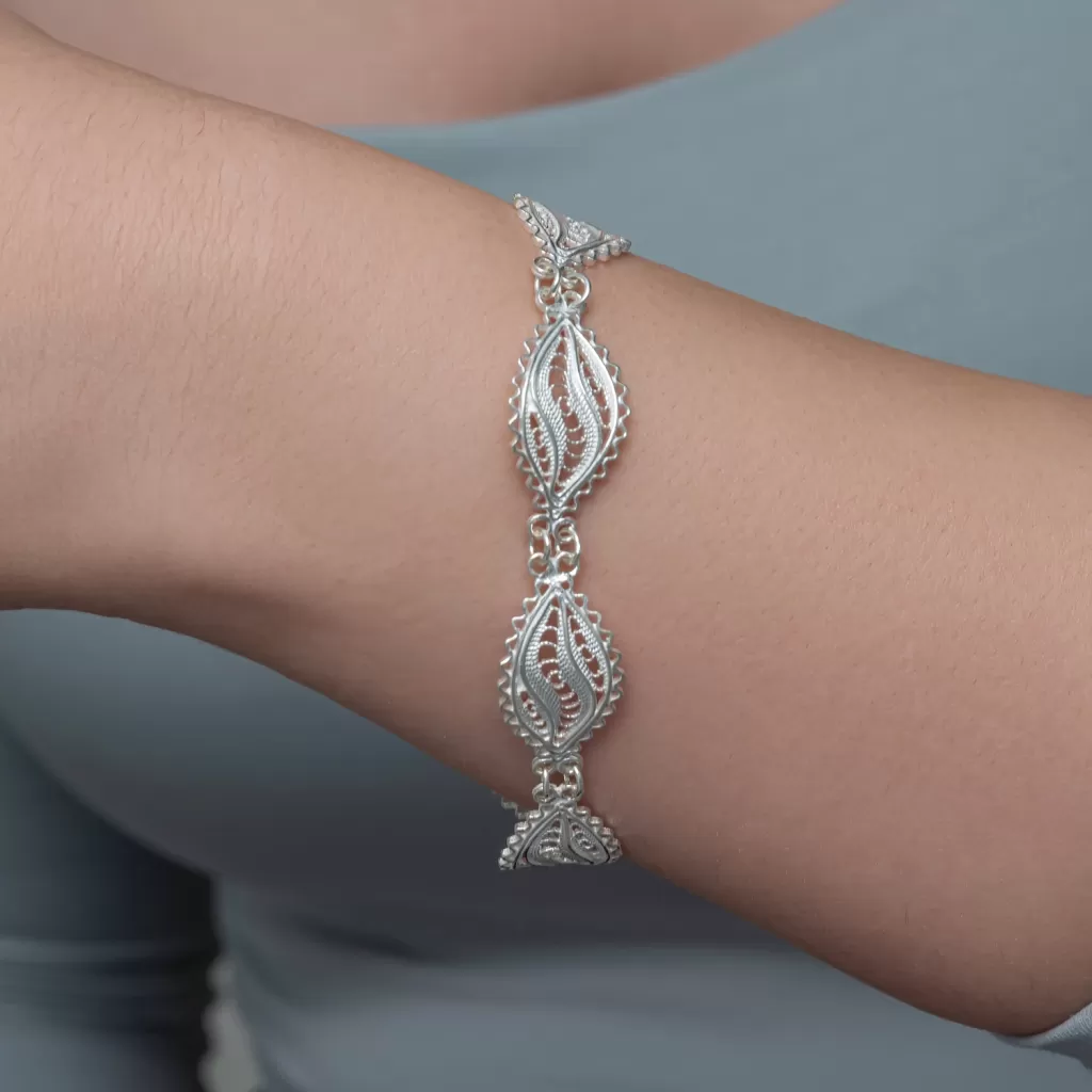 Gümüş Zarif Yaprak Telkari Kadın Bileklik