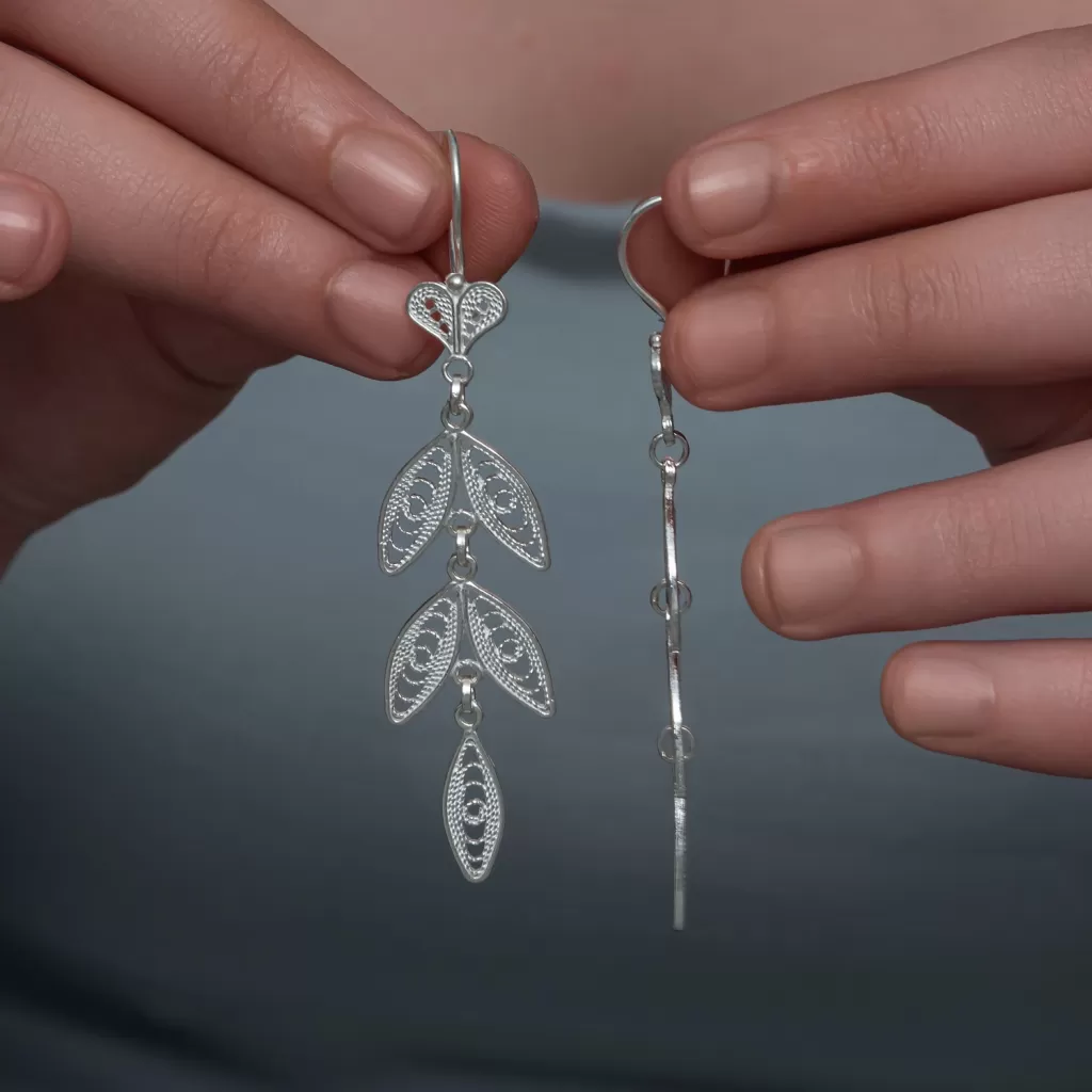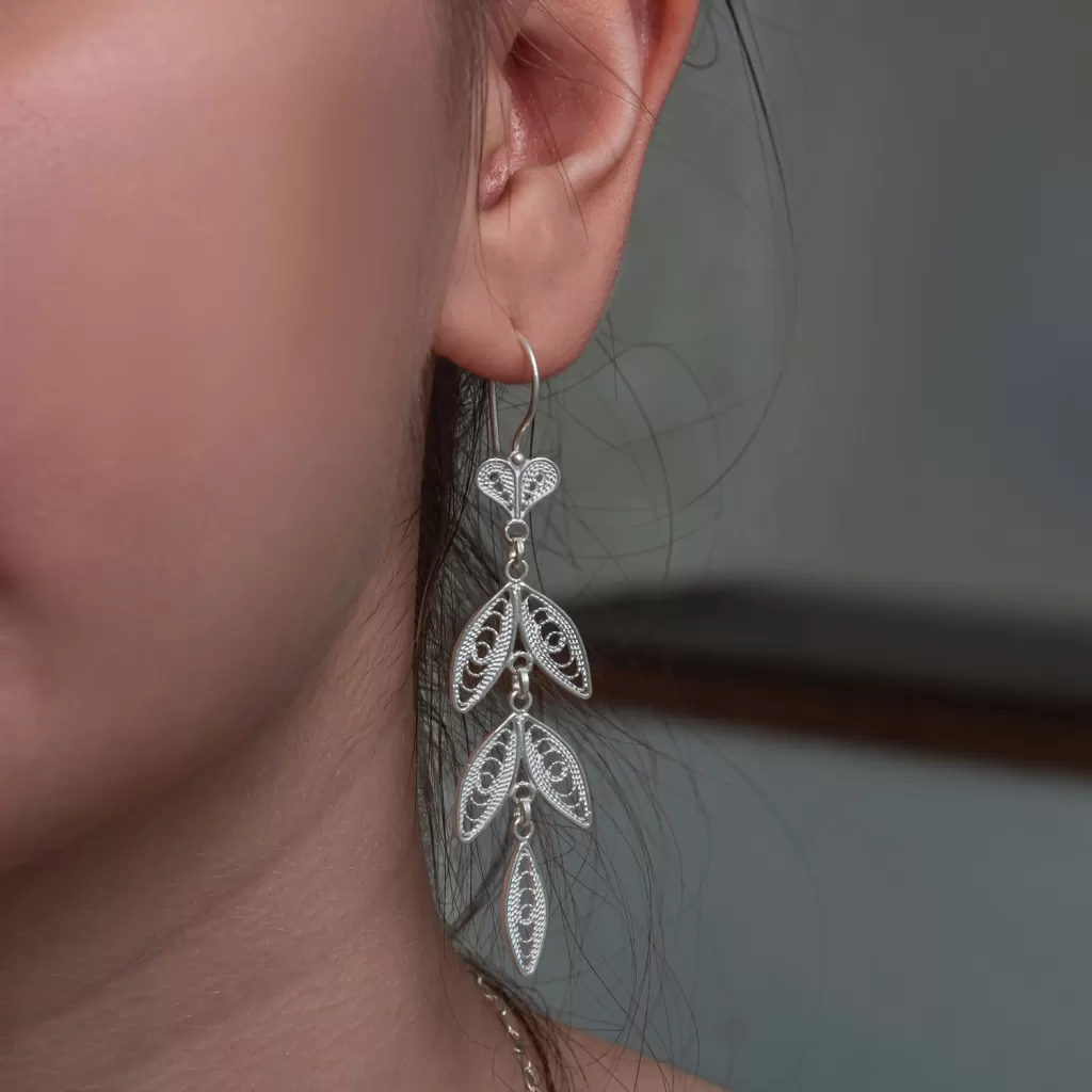 Gümüş Zarif Yaprak Telkari Kadın Küpe