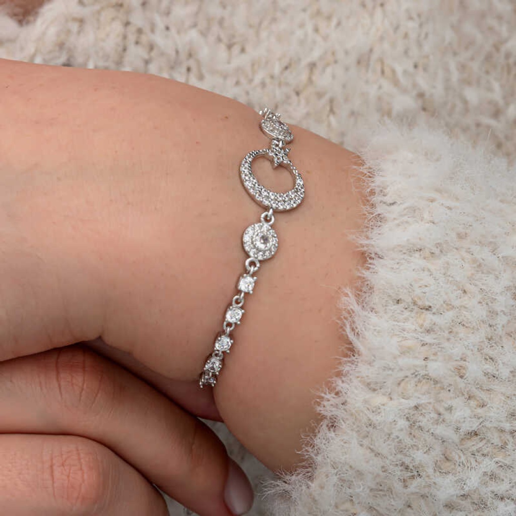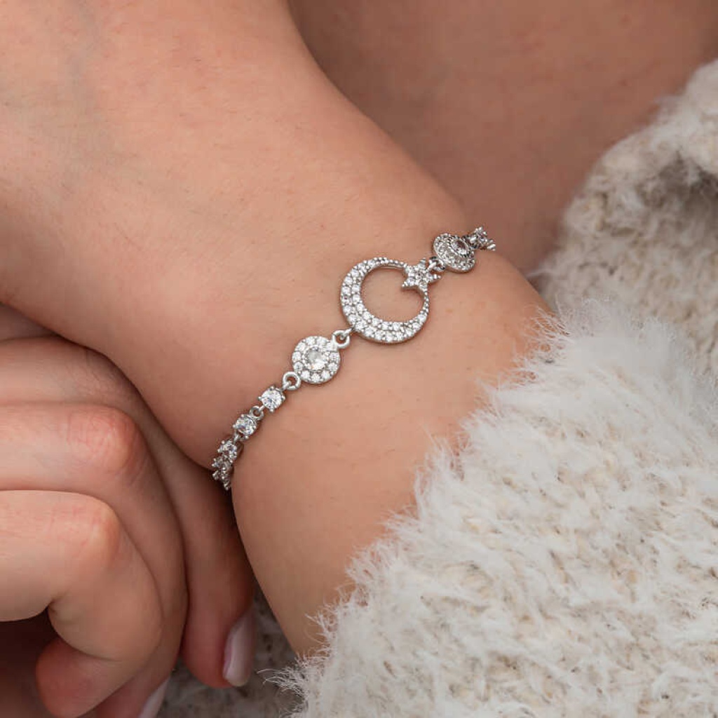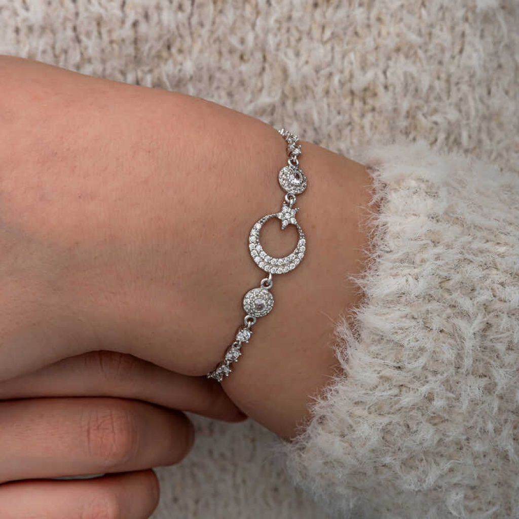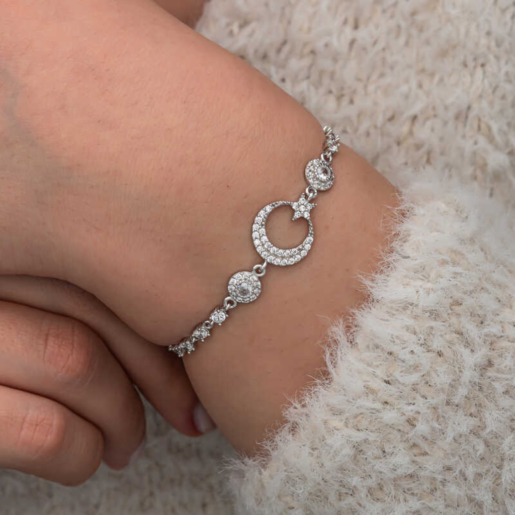 Gümüş Zirkon Taşlı Ay Yıldız Kadın Bileklik