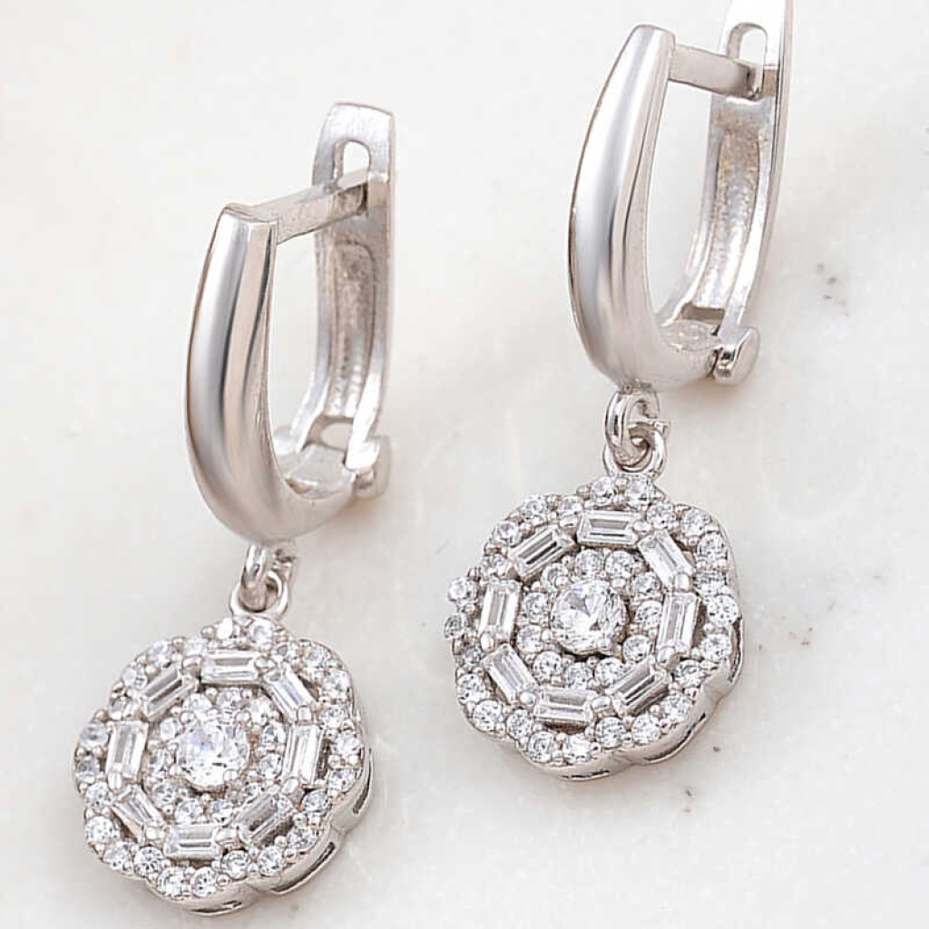 Gümüş Zirkon Taşlı Çiçek Kadın Küpe