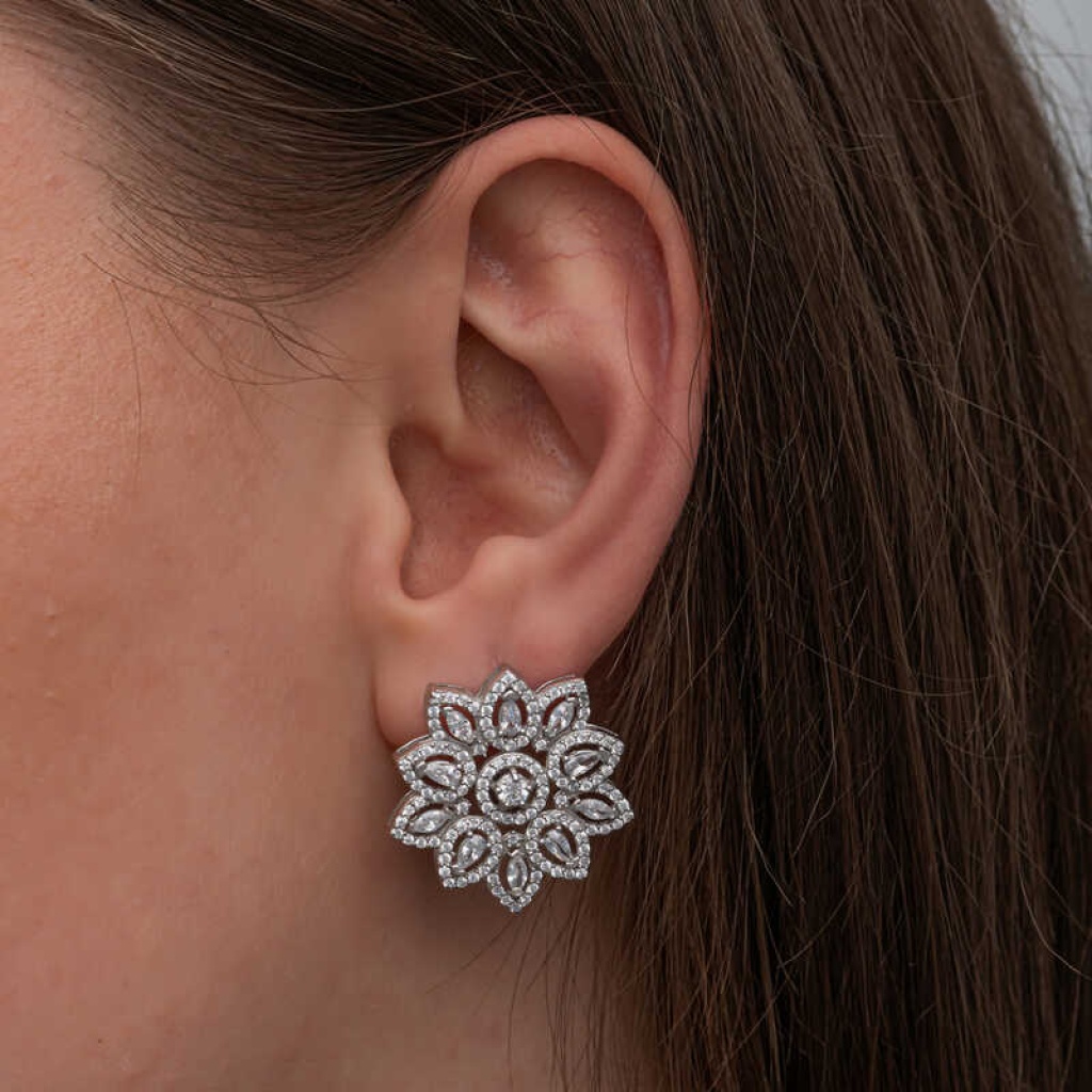 Gümüş Zirkon Taşlı Çiçek Kadın Küpe