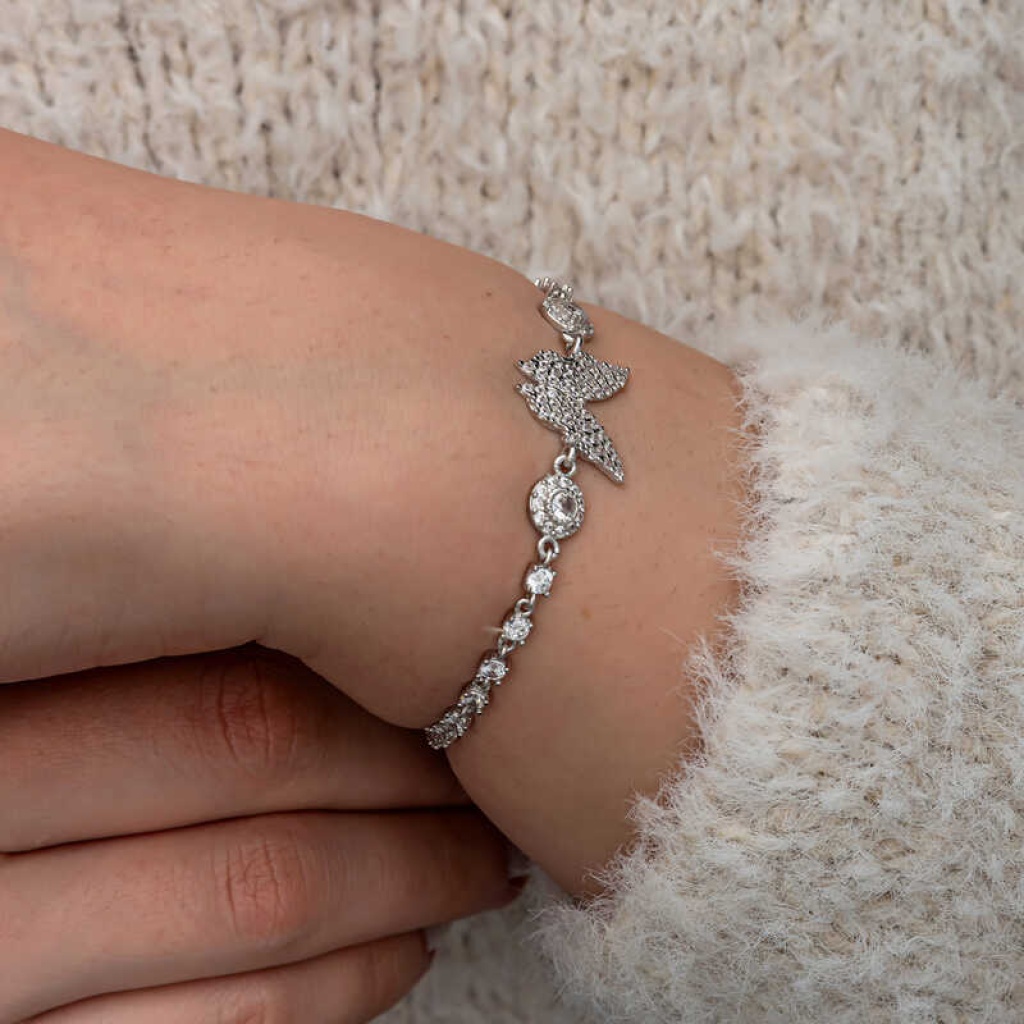 Gümüş Zirkon Taşlı Kelebek Kadın Bileklik