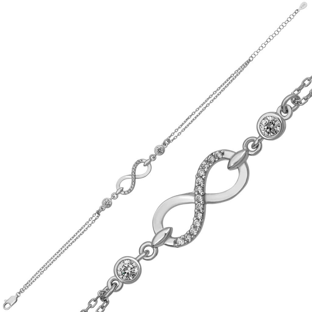 Gümüş Zirkon Taşlı Sonsuzluk Kadın Bileklik