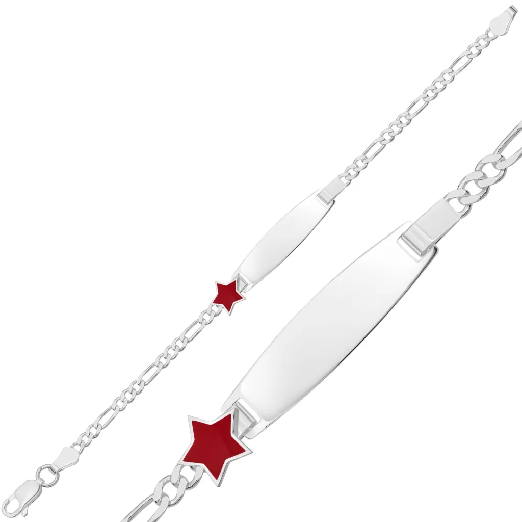 Kişiye Özel Kırmızı Yıldız Figürlü Gümüş Çocuk Künyesi