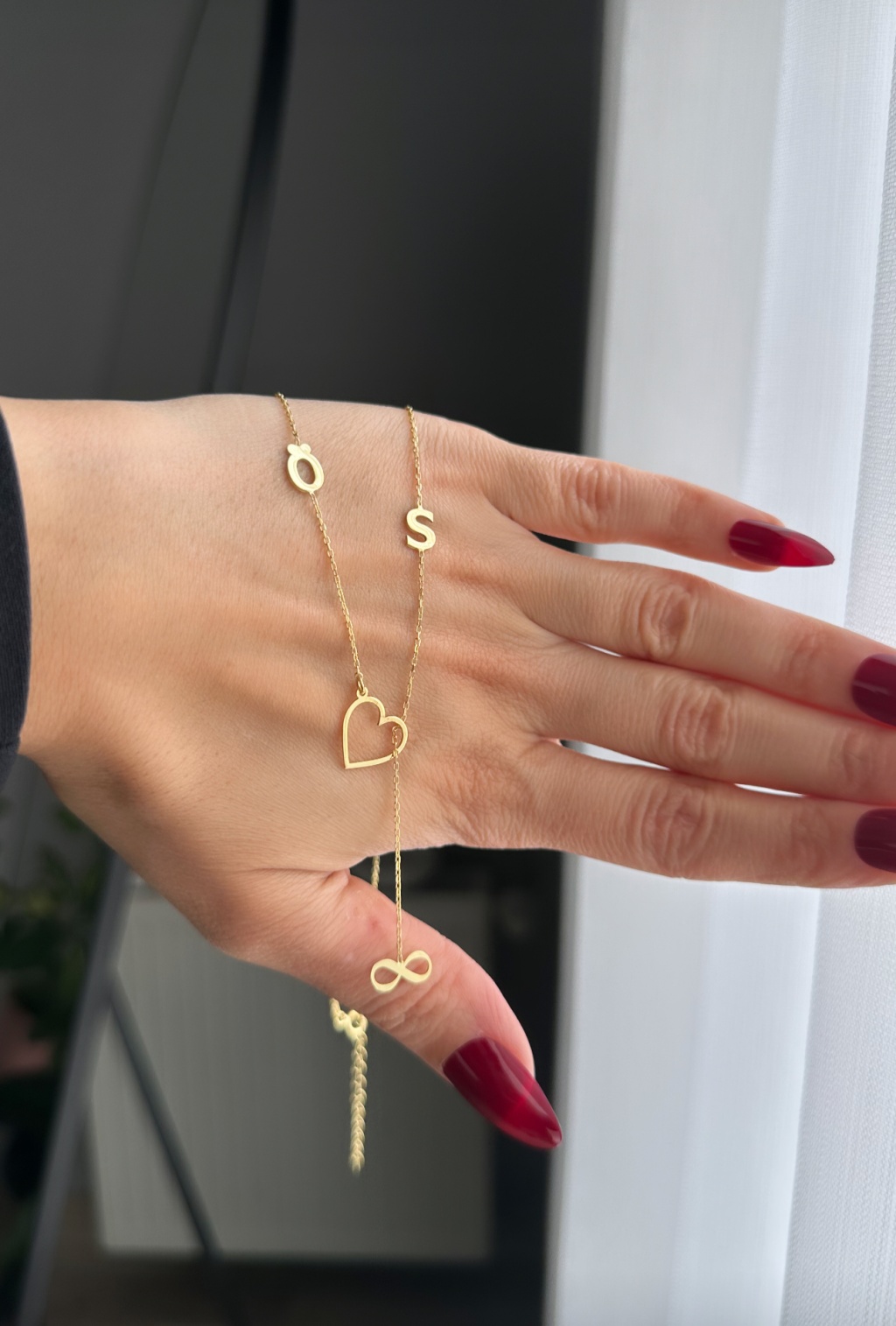 Sonsuzluk detaylı kalpli harf kolye